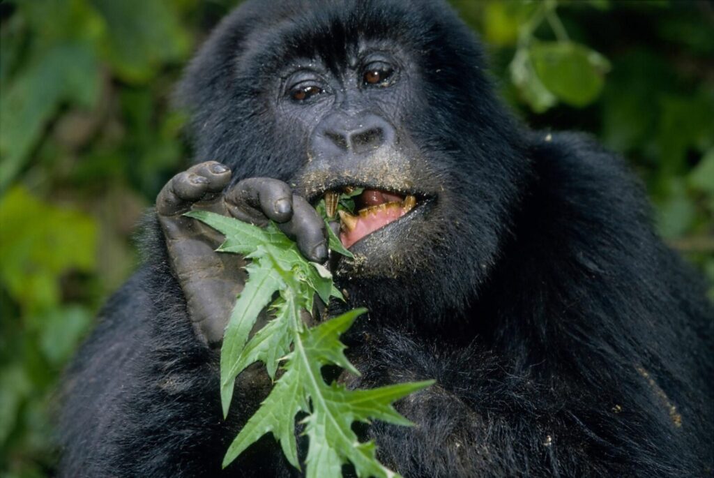 In protected areas such as Bwindi Impenetrable National Park and Volcanoes National Park, gorillas feed naturally with minimal human interference. Conservation rules ensure that trekking activities do not disrupt feeding times or patterns.