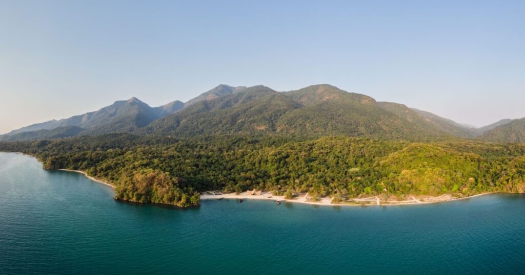 The Mahale mountain range rises sharply from the lake, creating a striking contrast between blue water, green forest, and rugged peaks. This dramatic geography shapes the park’s climate, biodiversity, and sense of remoteness.