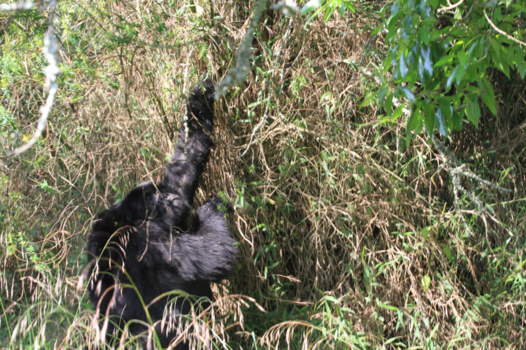 Dry-season conditions help trackers locate gorilla families efficiently. Gorillas maintain steady feeding routines and do not move far in search of food because vegetation remains widely available.